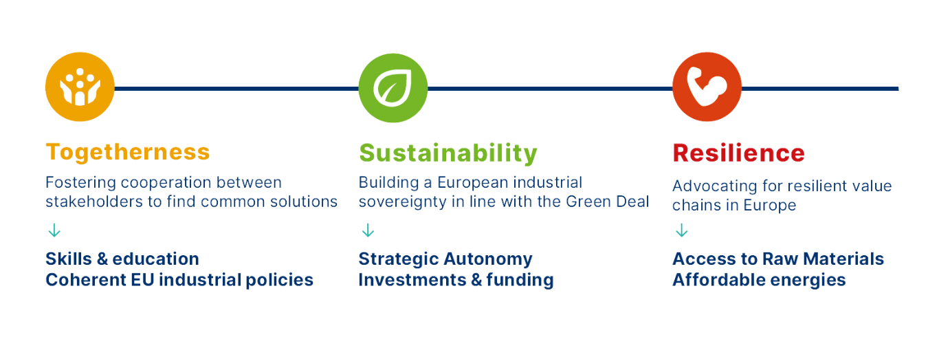 Since 2012, we are a platform that gathers several European stakeholders involved in the value chains of mineral and metal industries to find common solutions for a European strategic autonomy. Thanks to our platform and our activities, our partners have developed shared solutions and been raising awareness about the importance of raw materials value chains for the development of our Europe at all levels.